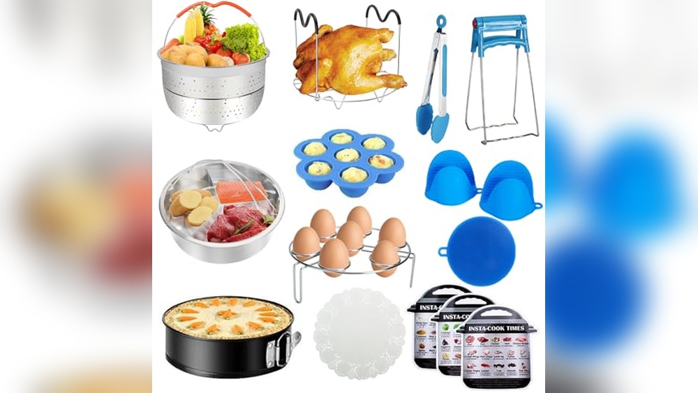 This 73-piece accessory set fits 5, 6, and 8-quart electric pressure cookers perfectly. Two steamer baskets and a rack help cook multiple foods at once. The non-stick springform pan is great for baking inside the cooker. An egg rack makes boiling eggs easy and mess-free. Each item is designed to be durable and easy to clean. Cooking with your Instant Pot becomes more fun and simple.