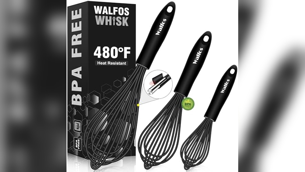 1. Walfos Silicone Whisk,Stainless Steel Wire Whisk Set of 3 -Heat Resistant 480°F Kitchen Whisks for Non-stick Cookware,Balloon Egg Beater Perfect for Blending,Whisking,Beating,Frothing & Stirring,Black